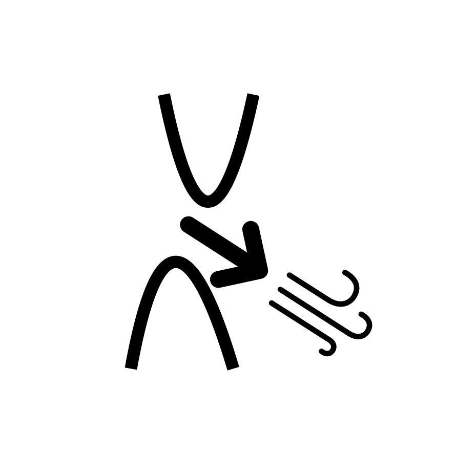 A levegő az ajkak közül felfelé irányul.